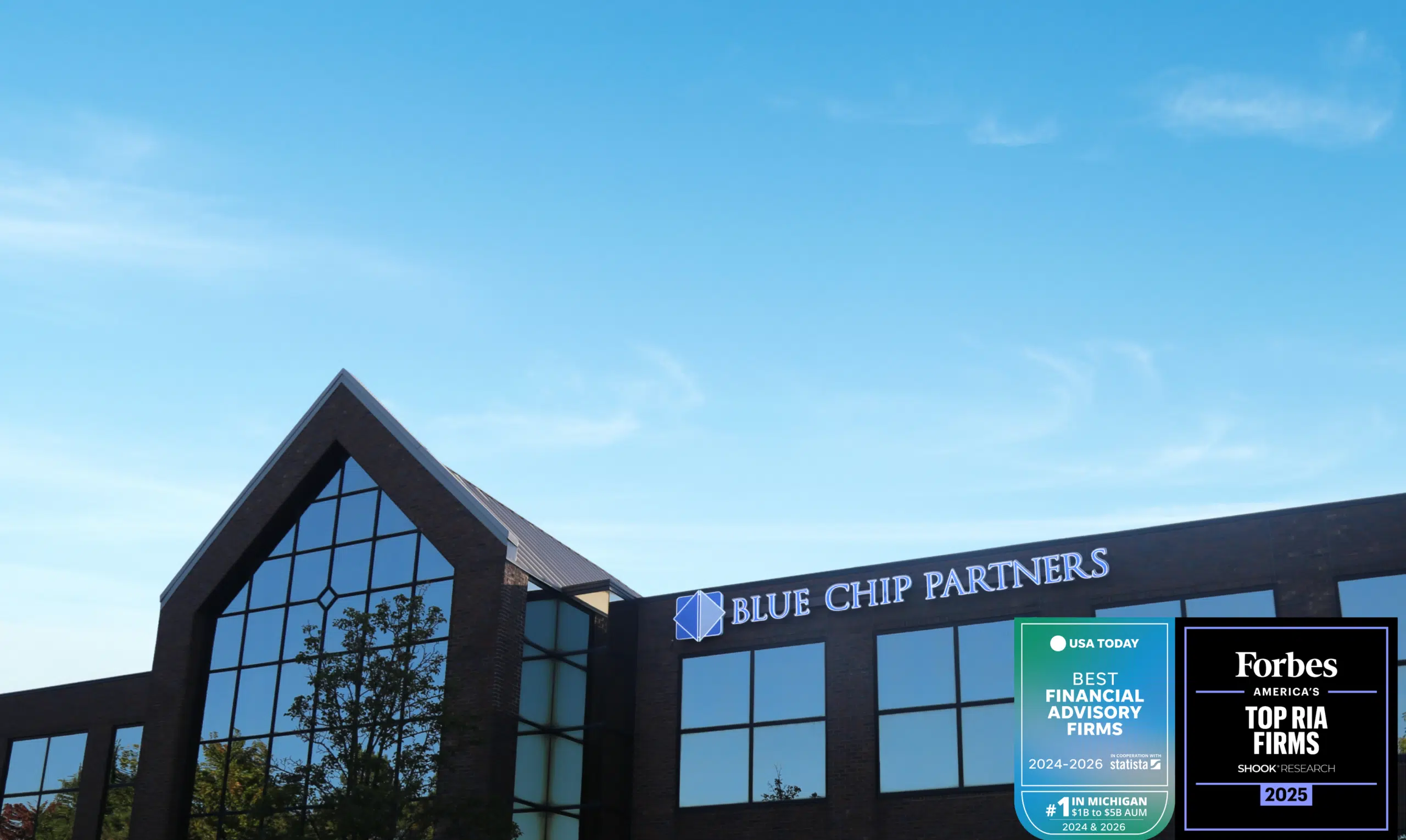 The most recent USA TODAY Best Financial Advisory Firms award was published in April 2026 and was based on the 2025 calendar year. Blue Chip Partners has not paid a fee to participate in the rankings, but has paid fees for licensing to reprint and distribute the results.